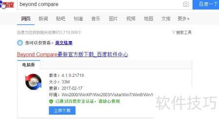 1、 在百度搜索beyond compare并下载安装即可使用。
