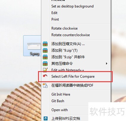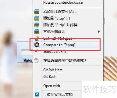 3、 换一张图片,点击右键,会发现新增了一个选项,因此前一步无需顾虑。选择其中的与9.png比较即可。