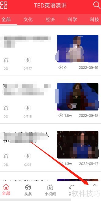 1、 打开TED英语演讲应用,进入右下角我的页面。