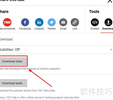 5、 点击下载视频按钮,即可获取你所需的TED演讲视频内容。
