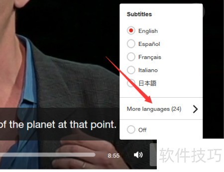 4、 刚才似乎没有中文字幕,我们点击更多语言选项即可找到。