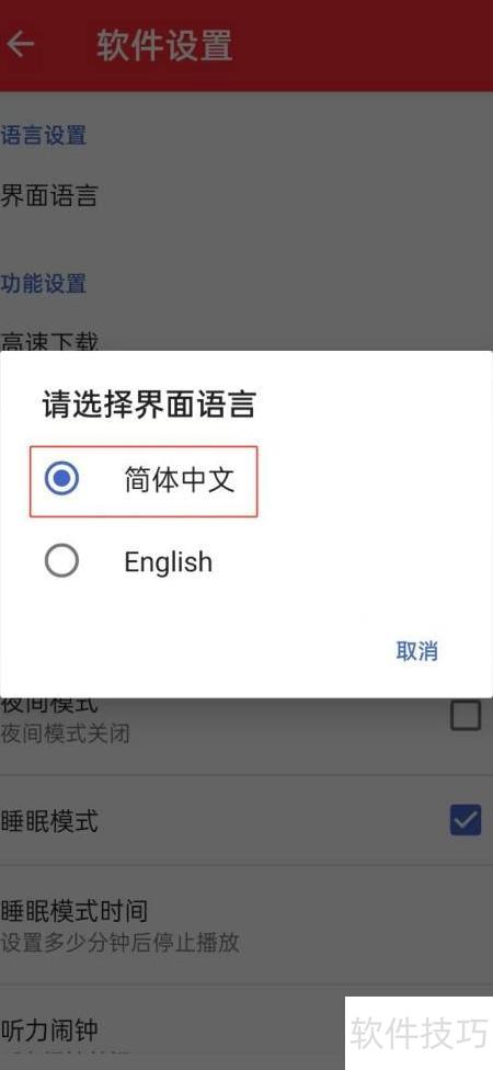 4、 在语言选择界面,点击简体中文完成设置。