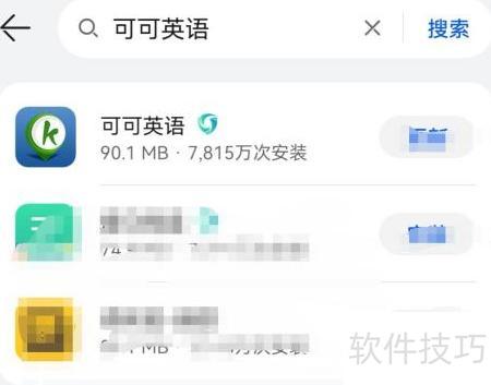 1、 在应用市场搜索并下载可可英语APP,操作所示。
