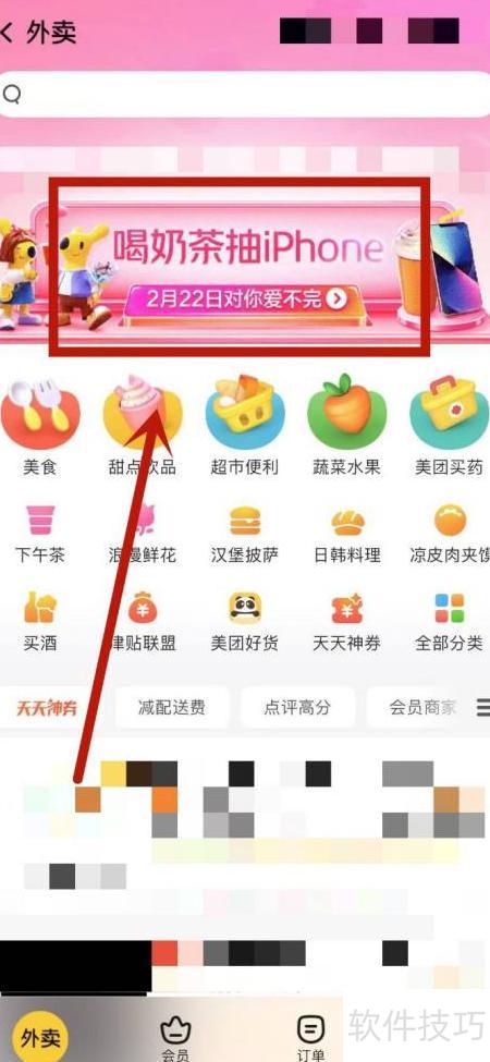 2、 打开美团外卖,参与喝奶茶抽iPhone活动即可。