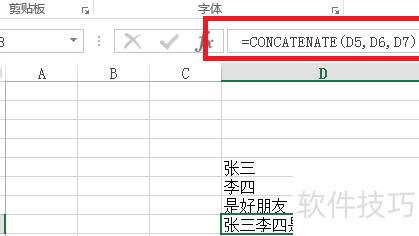 4、 汉字间的连接可通过CONCATENATE函数轻松实现,具体操作所示。