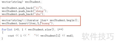 4、 通过向量迭代器,在其指向位置前插入一个新元素。