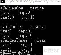 8、 reverse仅调整容器容量,改变vector的capacity值,不触发构造函数调用,因此实际元素数量即size保持不变。