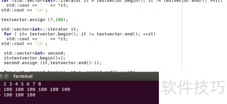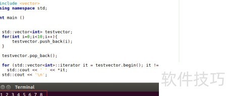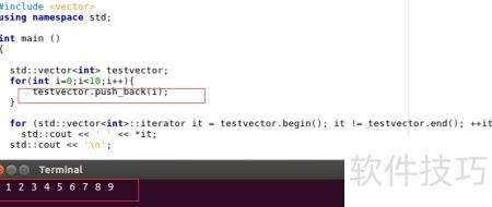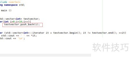 1、 所示,先定义一个int类型的vector容器testvector,然后通过循环结构依次将数据添加到该容器中。