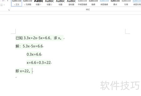 1、 解方程3.3x+2x-5x=6.6,合并同类项得0.3x=6.6,解得x=22。
