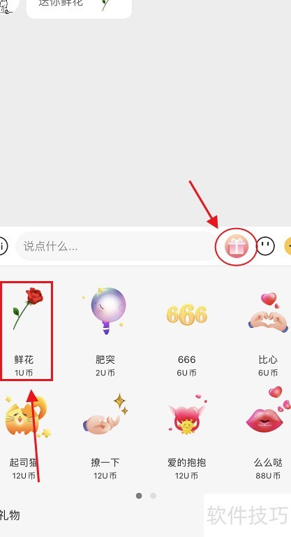 7、 U币可用于购买礼物并直接赠送给好友,点击礼物即可完成赠送。