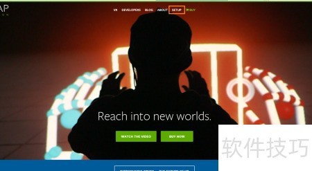 1、 访问Leap Motion官方网站https://www.leapmotion.com,进入主页后所示,找到页面顶部的菜单栏,点击最上方的SETUP(设置)选项,即可进入相关配置页面,按照提示完成后续操作。