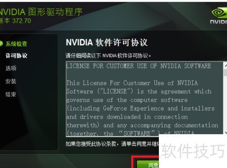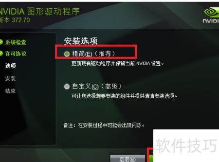 8、 进入图形驱动安装界面后,勾选同意并继续。在下一页面选择精简安装选项,点击下一步开始安装。安装过程中可能出现数次黑屏,属正常现象,无需担忧。待安装完成后,界面将显示完成提示,此时直接点击关闭即可结束整个安装流程。