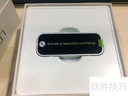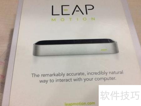 1、 打开快递后,看到一个包装盒,正面印有Leap Motion的商标和产品图案,下方标注了官方网址,整体设计简洁清晰,突出品牌与产品形象。