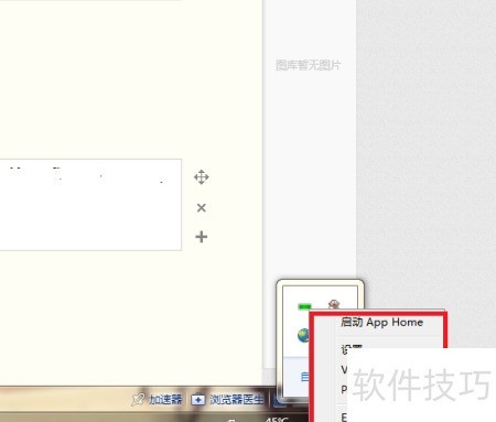 7、 将鼠标悬停在绿色图标上,点击右键,随即弹出包含启动APP Home、设置、Visualizer、暂停追踪和退出等功能的菜单,具体所示。