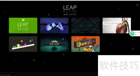 11、 Leap Motion的SDK包含一个名为APP Home的应用程序,用户可通过它访问官方提供的游戏资源。打开APP Home后,将进入Leap Motion应用库界面,在这里可以浏览各类支持体感操作的应用程序。用户只需从中选择任意一款应用,即可立即进行试玩体验,充分感受手势识别技术带来的交互乐趣。