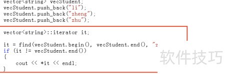 8、 若find函数返回的迭代器不等于end,表明在vector中找到了目标值,可通过该迭代器访问并输出对应元素的值。