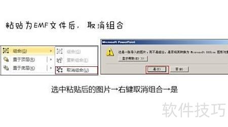 4、 粘贴图片后选中,右键选择取消组合,在弹出的对话框中点击是,即可将图片转为矢量形状。
