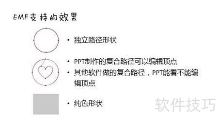 5、 EMF格式支持两种效果:独立路径图形和纯色填充图形。需注意,PPT中可编辑自身创建的复合路径顶点,但其他软件生成的复合路径在PPT中仅能显示,无法编辑顶点。