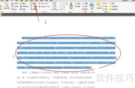 2、 在工具区域的菜单栏中找到并点击文本选择功能。...