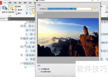 7、 在PDF编辑器中,按住鼠标左键拖动绘制矩形区域,系统将自动弹出图片选择窗口,选中所需图片后点击打开即可插入。