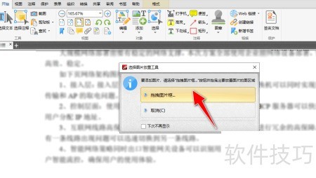 6、 弹出选择图片放置工具窗口后,点击拖拽图片框按钮。