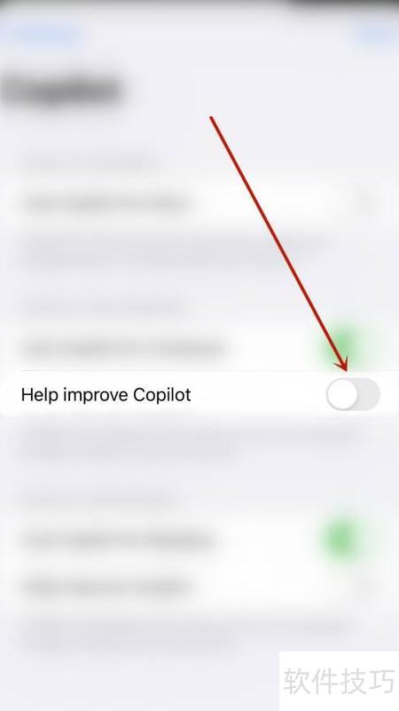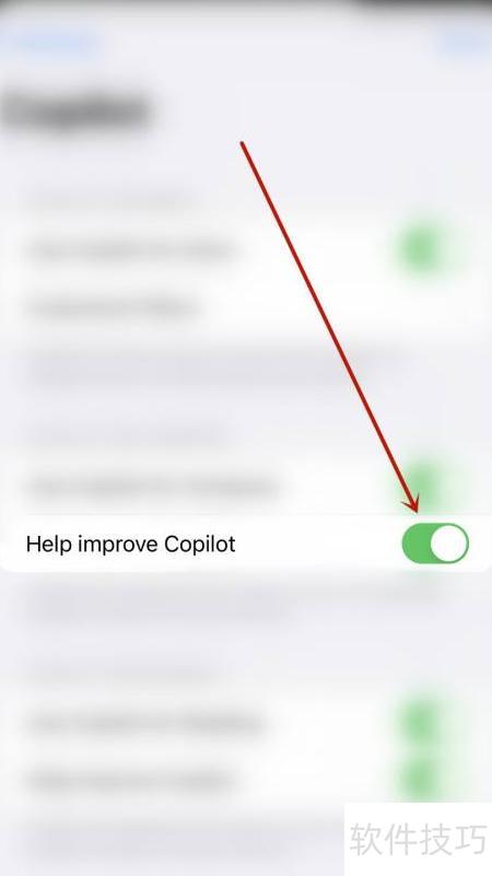 3、 在设置页面中,点击帮助改进Copilot选项右侧的圆点图标。