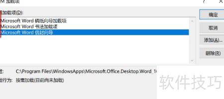 13、 取消所有加载项前的勾选(切勿删除),点击确定后重新启动Office程序,检查问题是否依然存在。