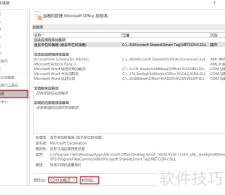 12、 进入管理选项,选择COM加载项,然后点击转到按钮。