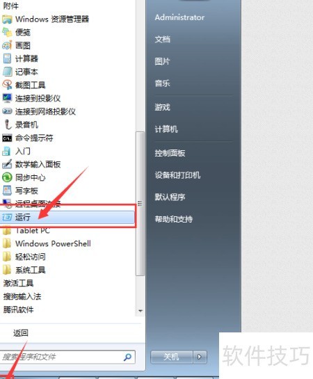 1、 启动电脑后,进入桌面,点击开始菜单中的运行选项,即可打开运行主界面。