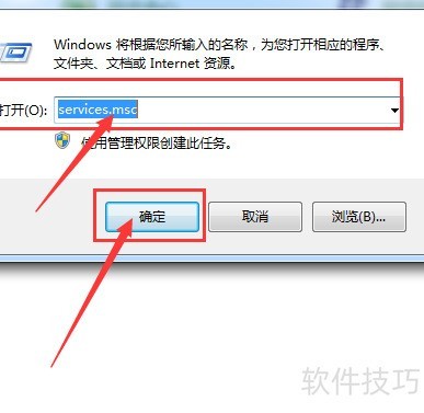 2、 进入主界面后,点击打开选项,输入 services.msc,然后点击下方确认按钮即可。