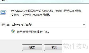 2、 输入winword /safe,按图示操作,点击确定即可。