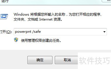 6、 启动程序,输入powerpnt /safe,按图示操作,点击确认即可。