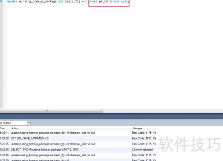 在使用Workbench操作MySQL时,执行更新操作必须添加WHERE条件,否则系统将阻止执行并提示错误信息,以防止误操作导致数据被意外修改,确保数据库操作的安全性与准确性。