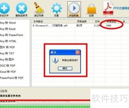 5、 点击转换后,软件将自动开始处理,底部进度条实时显示转换状态,当进度达到100%并提示转换完成时,即表示任务已成功结束。