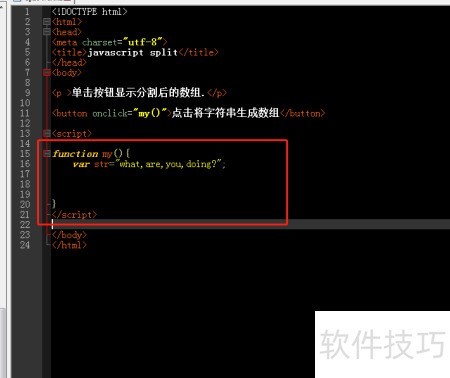 3、 定义一个函数,在其中声明字符串变量 str,其值为 what,are,you,doing?,各单词以逗号分隔。