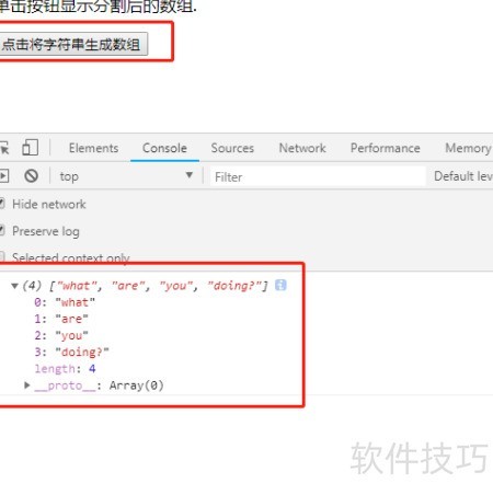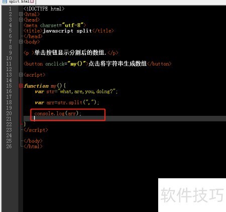 6、 打开浏览器中的split文件,点击按钮后在控制台查看输出结果。