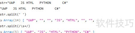 3、 当子串间空格数量不固定时,使用单个空格难以分割,此时应采用正则表达式进行处理。