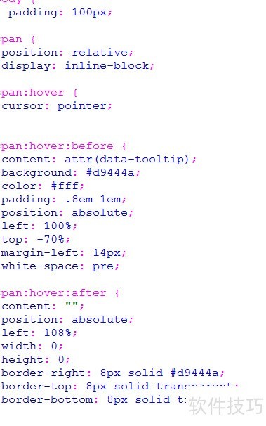利用CSS的content属性结合attr函数,实现鼠标悬停时显示自定义提示信息的效果。