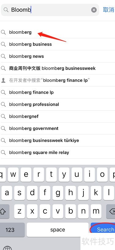 5、 进入搜索页面后,在输入框中键入Bloomberg Business,随后点击搜索按钮即可。