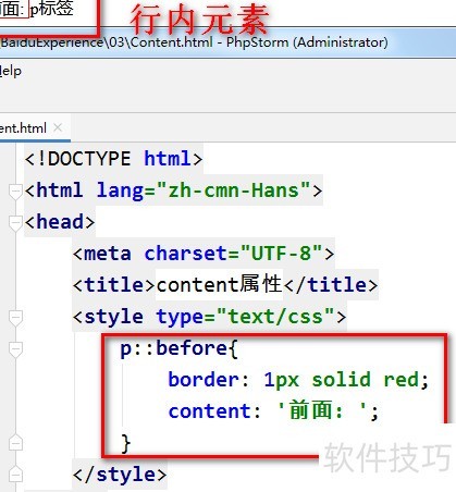 6、 伪类元素(::before)默认的显示属性为内联,具体表现所示。
