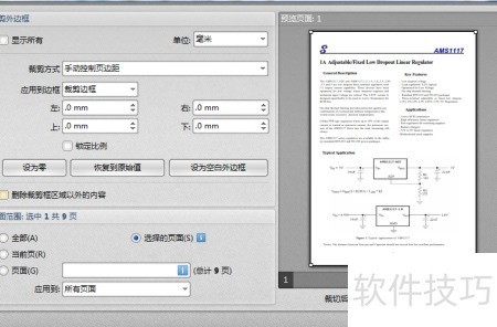 5、 在文档菜单中选择Crop Pages-裁剪页面以调整页面裁剪参数。