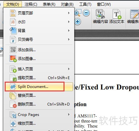 2、 在菜单栏中选择文档-split document,将弹出分割文件的对话框。