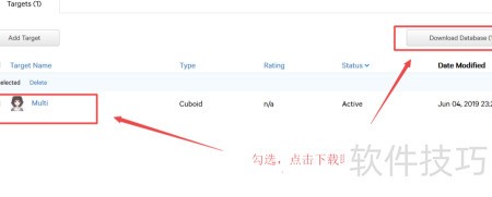 5、 进入新建的Database数据库,添加目标图片Add Target,多图识别选择Cuboid模式,按图片设定长宽高参数,并命名,具体操作所示。