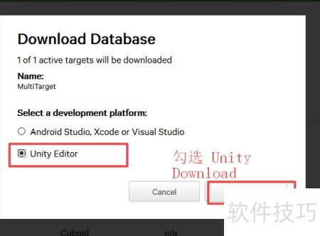 14、 返回Unity,在多目标下添加一个立方体进行测试,操作所示。