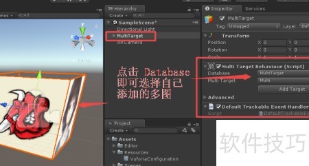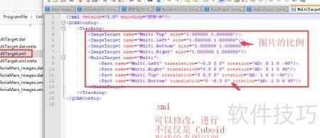 13、 修改XML文件中的相关信息并保存后,Unity会自动更新。这样便可根据实际需求灵活调整多图识别功能,不再局限于立方体识别,实现更自由的识别设置,具体效果所示。
