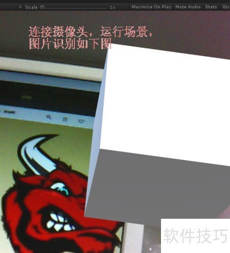 15、 连接摄像头并运行场景,识别图像后即可在不同位置看到Cube的展示效果,所示。