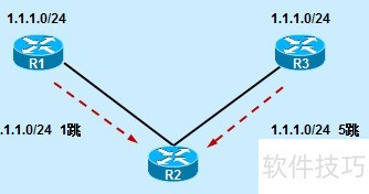 1、 当R1将1.1.1.0网络以1跳距离通告给R2后,若R1的直连接口失效,R2上指向R1的路由会因invalid计时器超时而进入不可达状态。随后该路由被置为抑制状态,并启动holddown计时器。在抑制期间,即使收到新的更新也不会立即处理。待holddown计时器超...