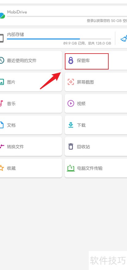 6、 进入保管库,点击右上角三点图标,操作所示。