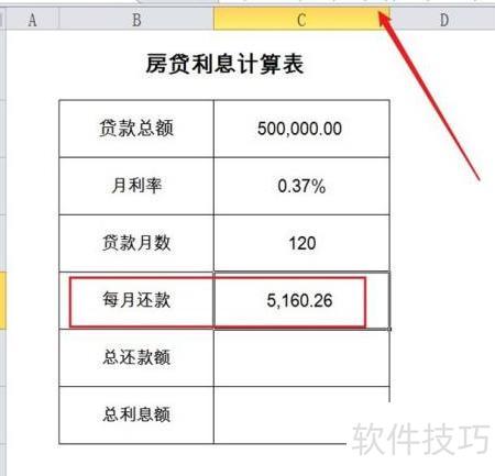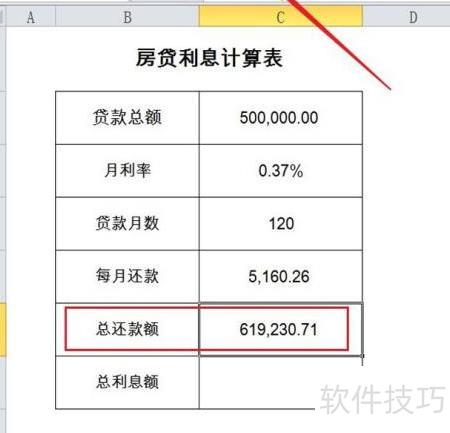 5、 计算房贷总还款额,请输入公式: