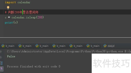 6、 判断200年是否为闰年,调用日历模块的isleap函数进行检测,并输出结果。